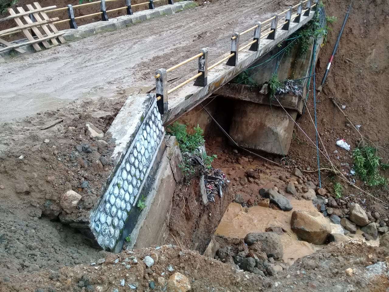 jembatan rapuh yg tersisa 1 tiang penyangga